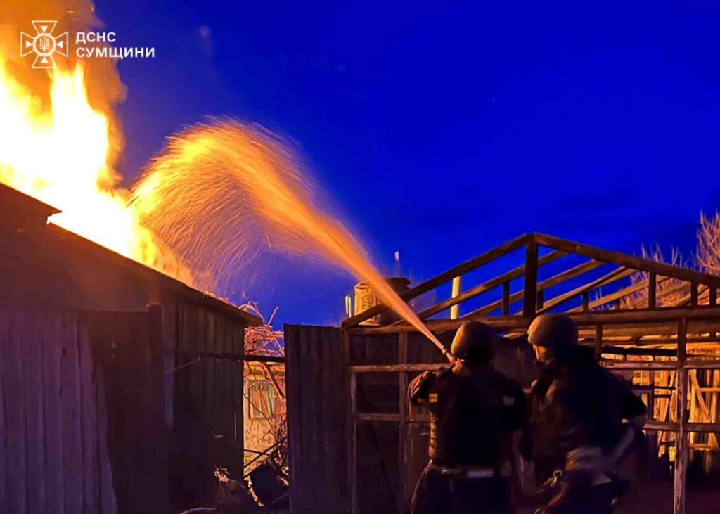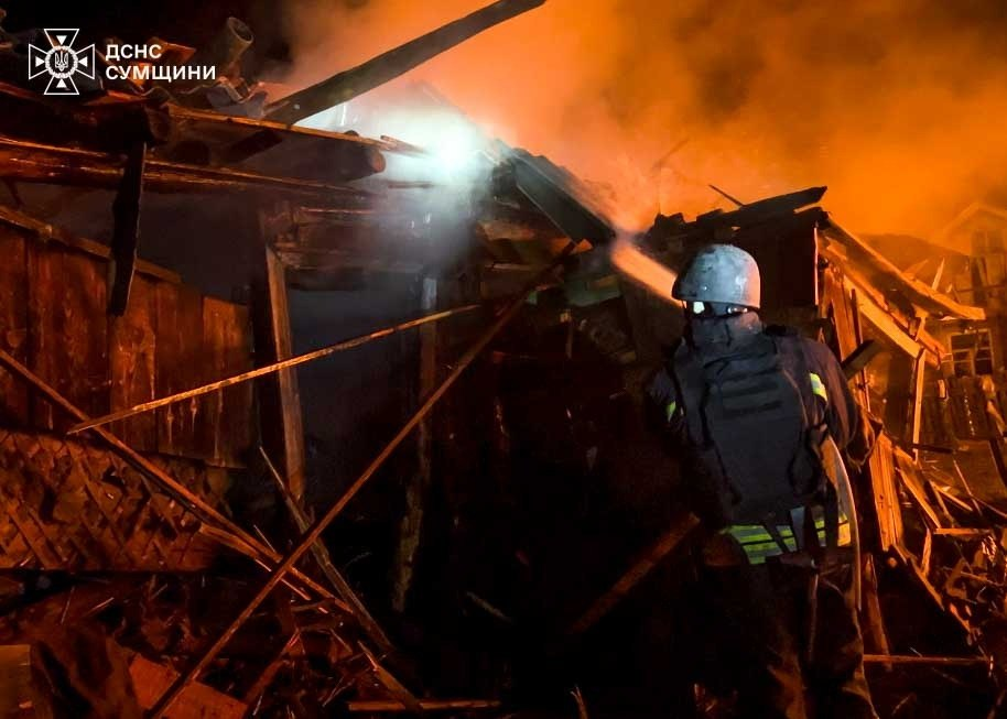 Вночі місто опинилося під ударом — загорілися будинки та господарські споруди. Під час ліквідації вогню рятувальники неодноразово змушені були призупиняти роботи через постійні загрози з неба та відходити в безпечні місця.